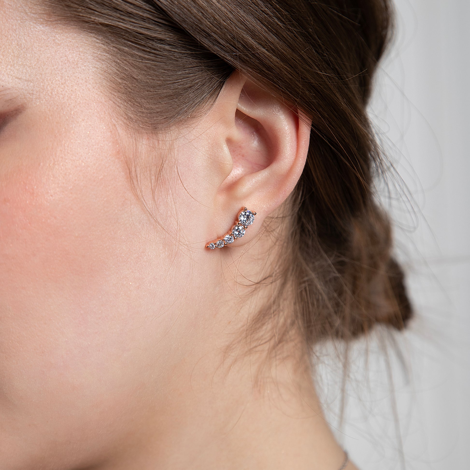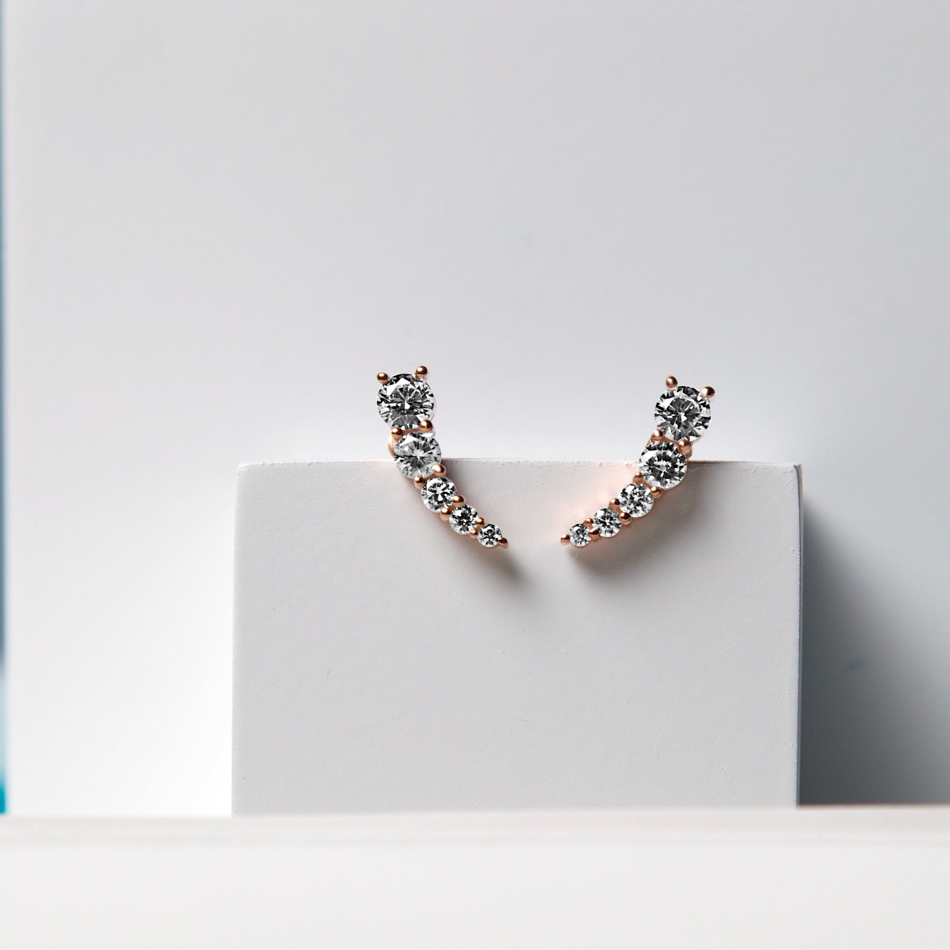 Stylist's Note: Effortlessly chic and versatile, these ear climbers are perfect for both casual and formal occasions. Embrace the beauty of rose gold and make a statement with these stunning accessories.
